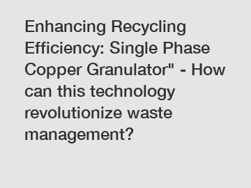 Enhancing Recycling Efficiency: Single Phase Copper Granulator" - How can this technology revolutionize waste management?